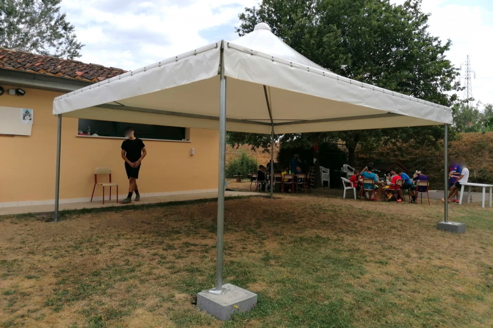 Fornitura e montaggio di gazebo Airone autoportante con copertura superiore in PVC.