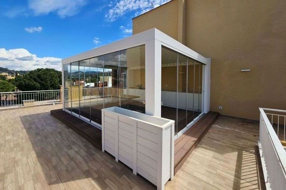 Realizzazione di chiusure laterali attraverso vetrate panoramiche scorrevoli.